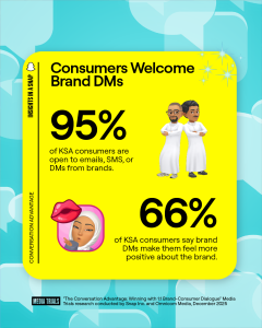 رغم الطابع الشخصي لقنوات التواصل الفردي، يظهر المستهلكون في المملكة العربية السعودية انفتاحًا أكبر على تلقي الرسائل المباشرة من العلامات التجارية. حيث يشير 85% منهم إلى أنه ليس لديهم مانع من تلقي رسائل العلامات التجارية في المحادثات. فيما عبر 66% منهم عن شعورهم الإيجابي تجاه العلامة التجارية بعد تلقي رسالة مباشرة منها.