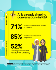وتظهر النتائج وجود تحول واضح في سلوك المستهلكين، إذ لم يعد التواصل يقتصر على الوسائل النصية. بل بات يشمل أيضًا الصور ومقاطع الفيديو والتواصل التعبيري المدعوم بالذكاء الاصطناعي. وفي المملكة العربية السعودية. أصبحت منصات مثل سناب شات أداة محورية لتحديد كيفية تواصل الناس والتعبير عن أنفسهم والتفاعل مع العلامات التجارية بطرق أكثر عمقًا وذات طابع شخصي.