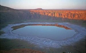 وما يثير الدهشة أكثر هو القاع الأبيض الذي يغطيها بالكامل، والذي ليس سوى طبقة من الأملاح المعدنية المتبلورة. تكونت بفعل تجمع مياه الأمطار في قاع الفوهة ثم تبخرها مع الزمن.