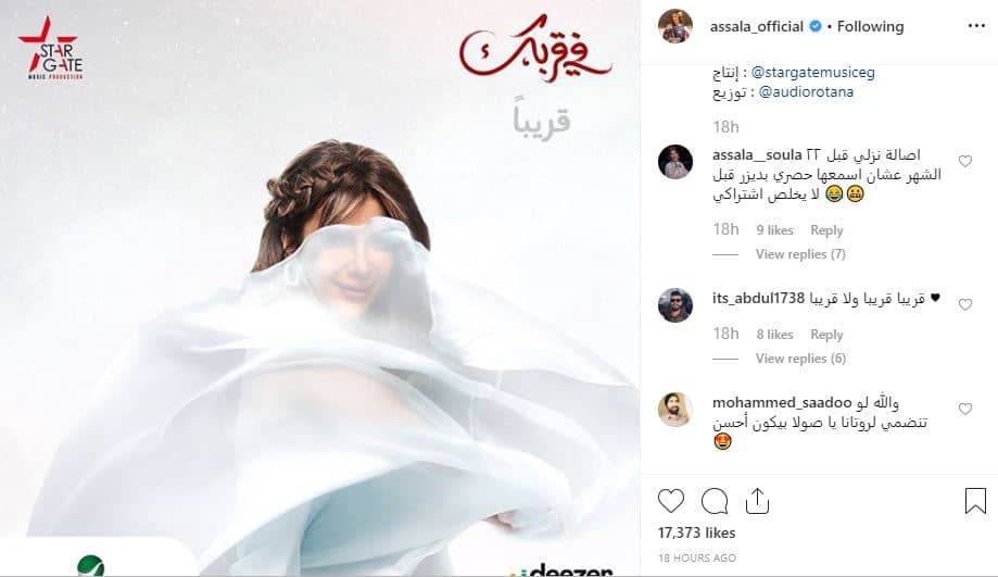 وعلقت على الصورة، قائلة «انتظروا قريبًا جديد أصالة ألبوم في قربك على تطبيق deezermena»، فمن المقرر طرحه في موسم عيد الأضحي المقبل.