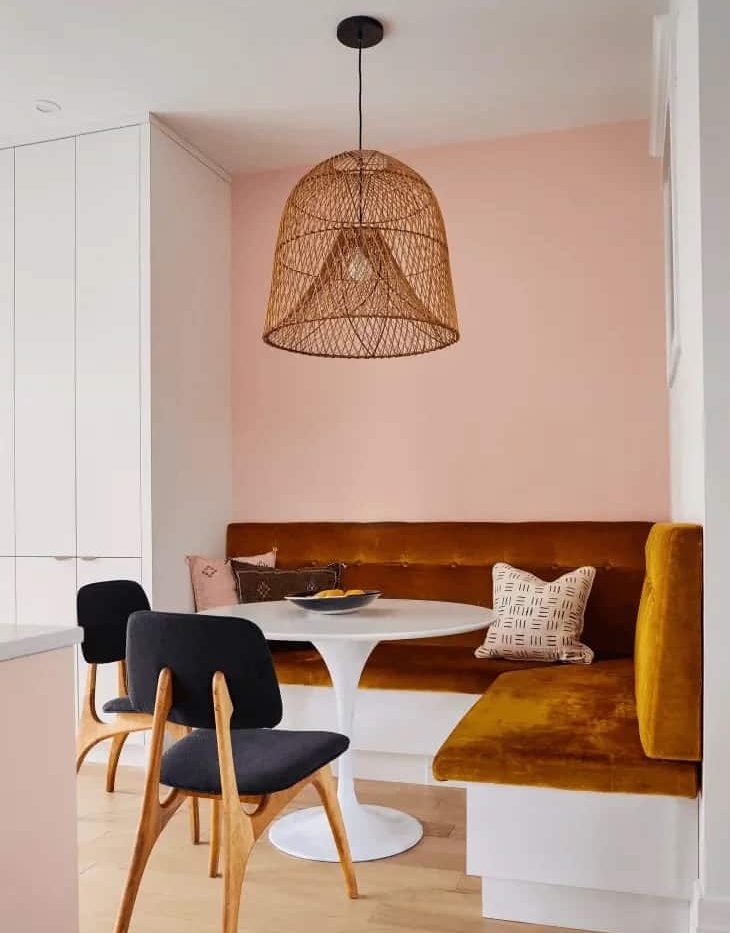 وإذا كنتِ من محبي الألوان الزاهية، فلا تتردي في تطبيق ذلك في غرفة السفرة، فيمكنكِ الحصول على غرفة طعام مبهجة من خلال اختيار ألوان دهانات مميزة، ومزجها مع ألوان كراسي الطاولة.