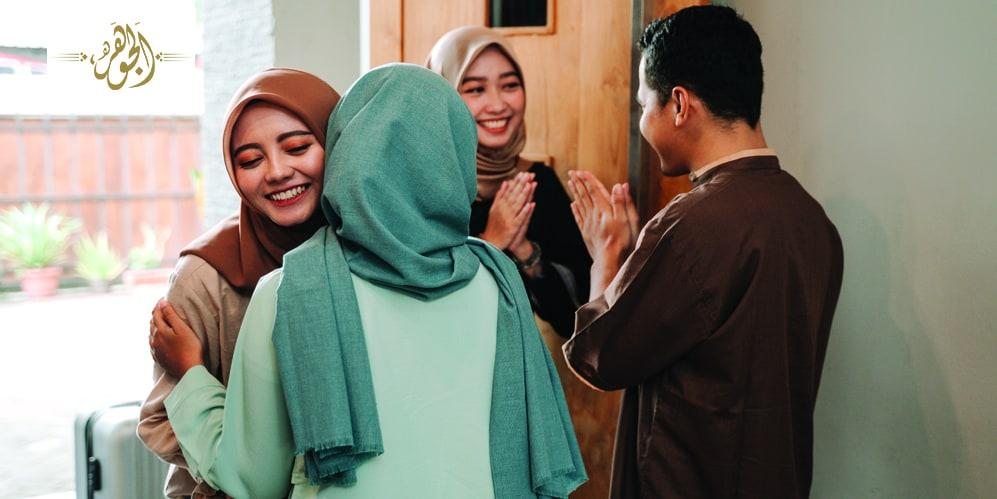 عند استقبالك للضيوف، لابد من تحيتهم أمام باب منزلك، والتعبير عن امتنانك برؤيتهم، وإبداء سعادتك للحصول على هداياهم، الأمر الذي يزيد من روابط المحبة بينكما.