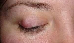 - نتوء صغير في الجفن يزداد حجمه تدريجيًا.