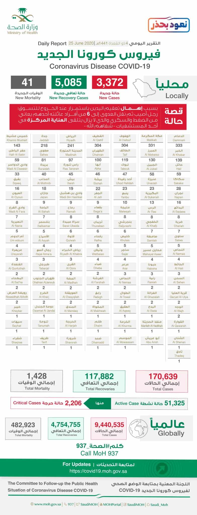 أعلنت وزارة الصحة، اليوم الخميس، عن تطورات فيروس كورونا في المملكة بعد العودة إلى الحياة الطبيعية، ورفع منع التجول.