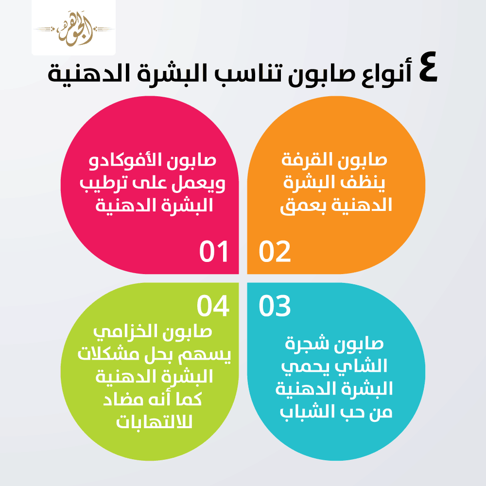 وتُقدّم الجوهرة 4 أنواع صابون تناسب البشرة الدهنية.