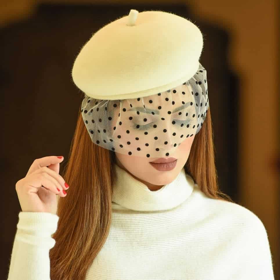 وارتدت نسرين فستان قصير صوف باللون الأوف وايت، ونسقت معه معطف باللون الجملى وضعته على كتفيها فقط، واستكملت إطلالتها بقبعة بيضاء من قماش الصوف وهو ما زاد من جمالها.
