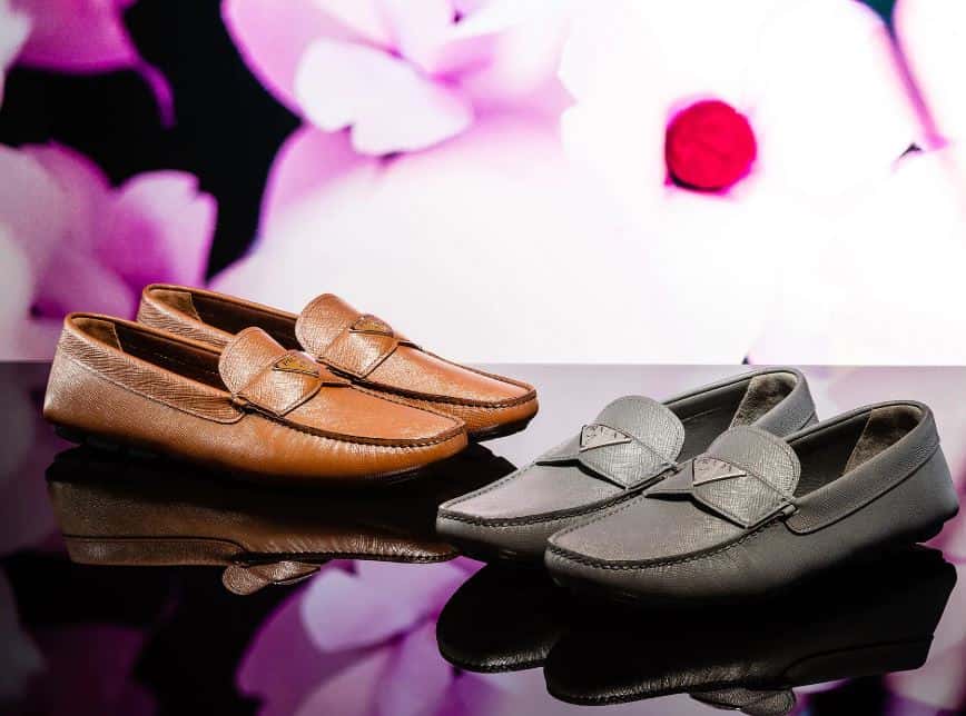 وتضمنت المجموعة أيضًا تقديم الأنماط البسيطة من أحذية برادا، مثل أحذية الميول التي تشتهر بكعبها المكعب بطبعة جلد تمساح.