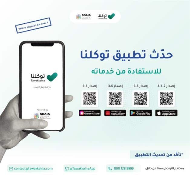 وجه تطبيق توكلنا، تنبيهًا بضرورة تحديث التطبيق بنسخته الجديدة عبر منصات تحميل التطبيقات، من أجل الحصول على خدماته بطريقة أفضل.