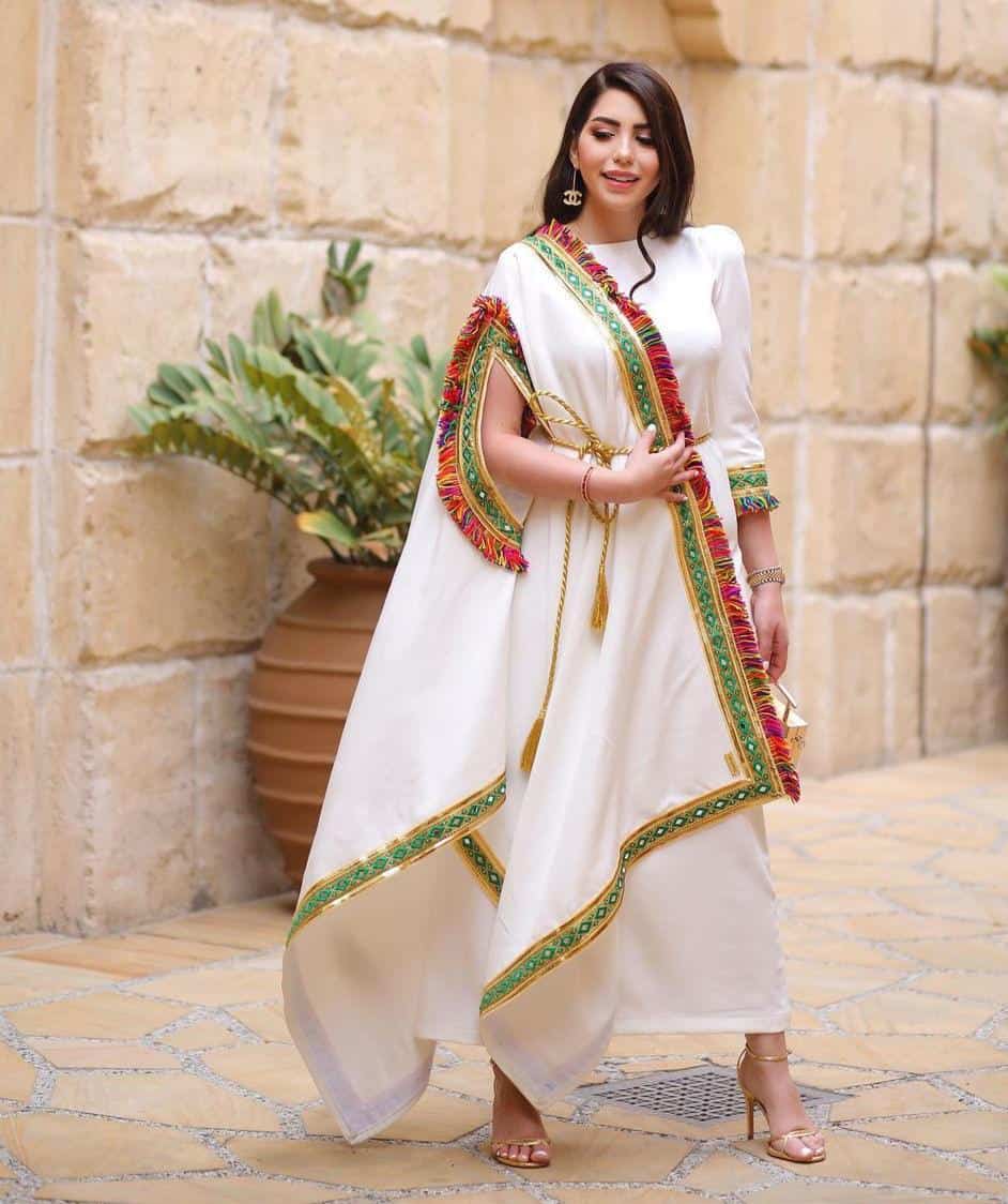ظهرت الممثلة البحرينية أبرار سب، بجلابية بيضاء مصممة بأكمام منفوخة مع حزام محدد للخصر، بجانب الإكسسوارات الفضية وساعة جلد في مظهر أنيق وعصري.