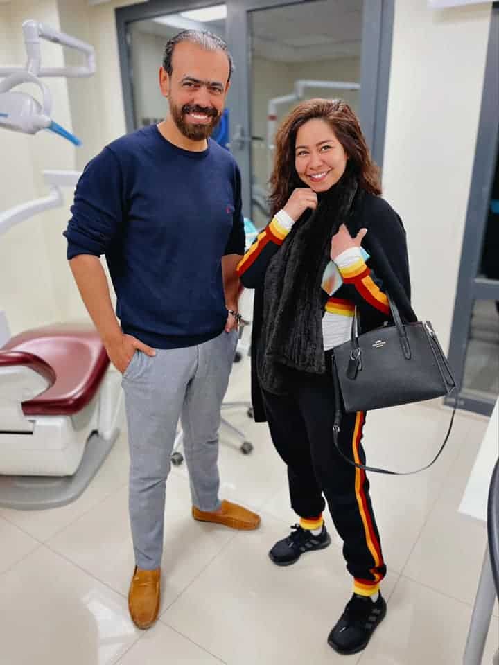 ونشر طبيب شيرين الخاص للعناية بأسنانها صورة لها داخل مركزه الطبي، مع رسالة ترحيب.