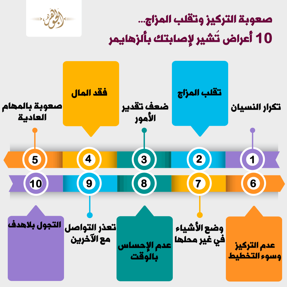 أصبح مرض ألزهايمر، يهدد الشباب إلى جانب كبار السن، وإذا كنت تعتقد أن شخصًا ما قد يكون مصابًا بألزايمر، فهناك 10 مؤشرات هامة قد تكون مؤشرًا قويًا على الإصابة بمرض ألزمايمر.