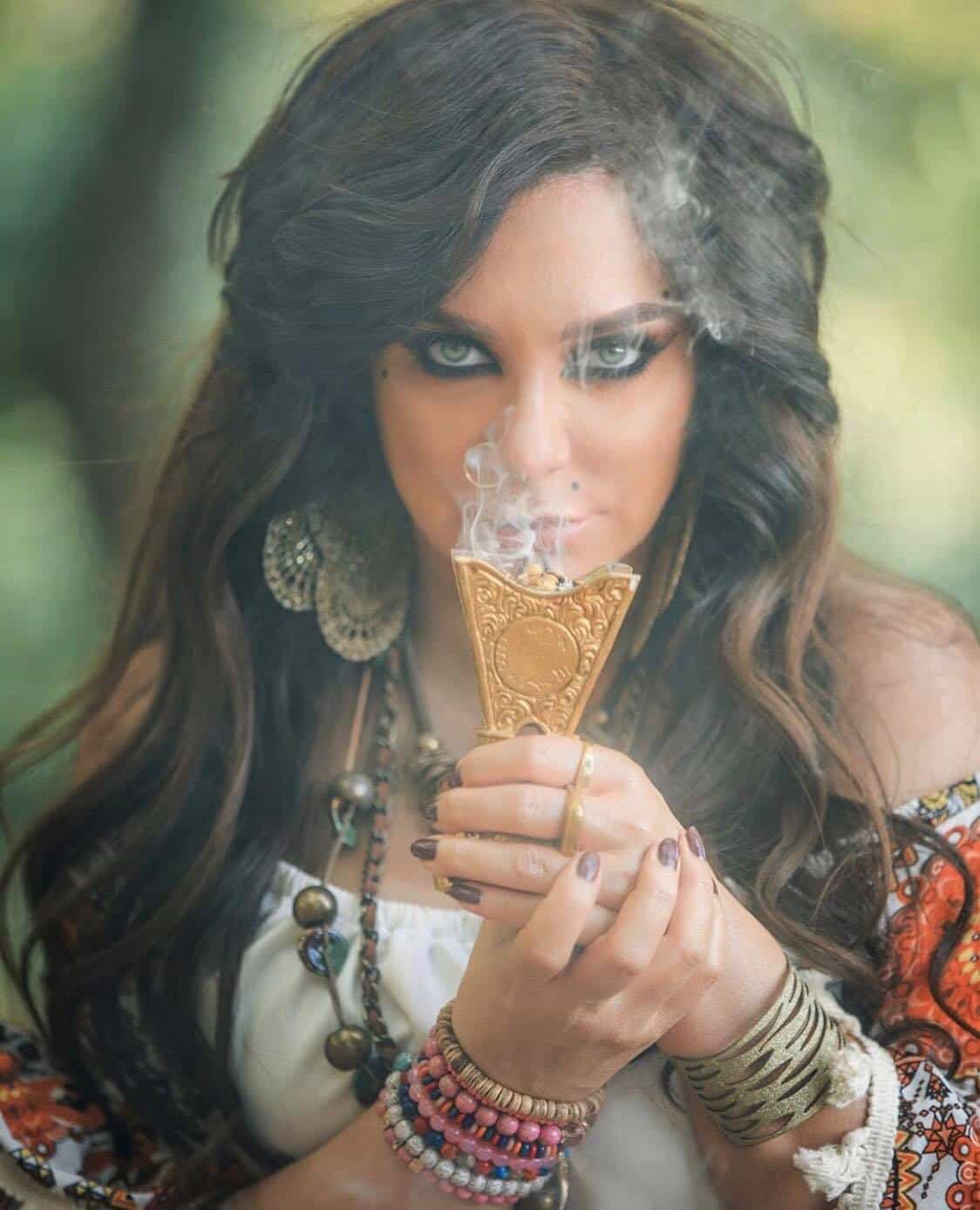 وخصعت “فواخرجي” للجلسة داخل إحدى الغابات، لتكتمل إطلالتها الغجرية؛ حيث ارتدت فستانًا يميل لهذا الطابع بالإضافة إلى الرسم على وجهها كما يفعل الغجر، وارتدت إكسسوارات تتماشى مع الإطلالة.