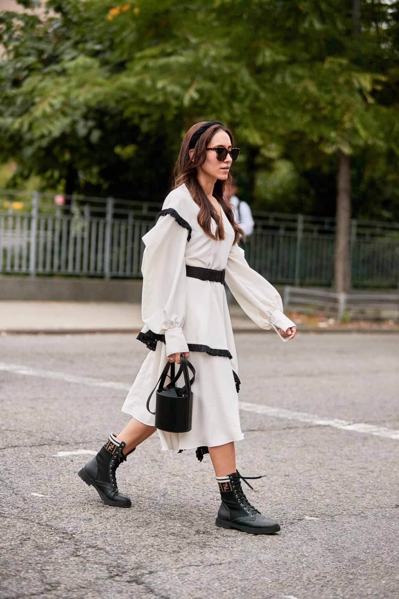 ويوجد أخرى ترتدي نسخة بيضاء كلاسيكية نسقتها مع زوج من أحذية البوت العسكري.