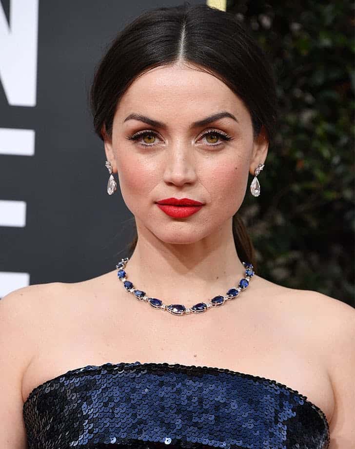واستطاعت الكوبية “آنا دى أرماس”؛ نجمة الجزء الجديد من سلسلة جيمس بوند الشهيرة، أن تلفت الأنظار، بقلادة على شكل كمثرى وأقراط كبيرة من الألماس من تيفانى أند كو.