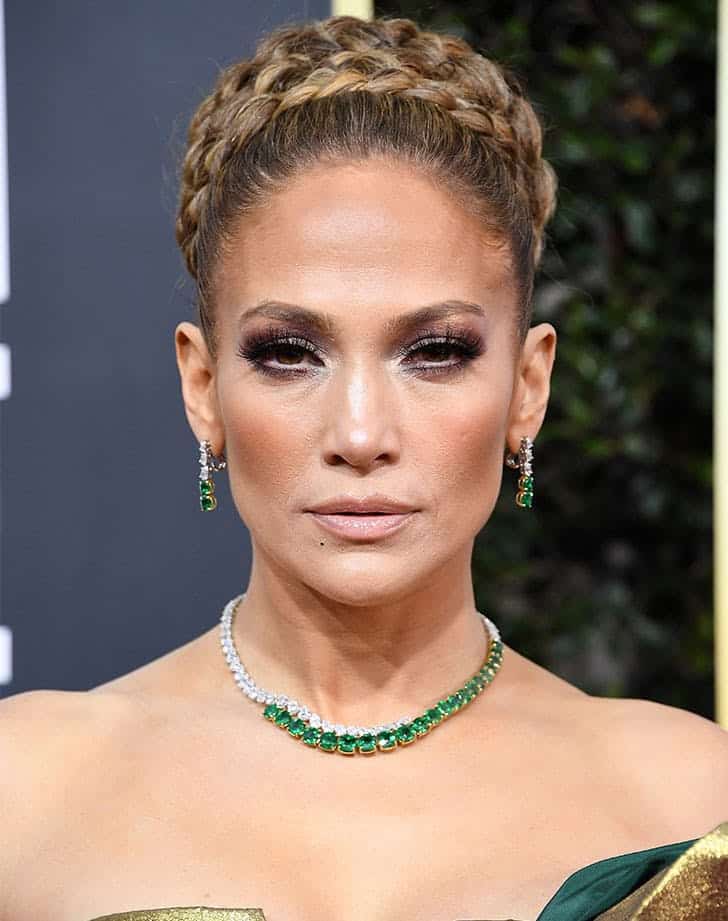 أما “جينيفر لوبيز”، فقد ارتدت قلادة مذهلة من الألماس والزمرد من هارى وينستون مع الأقراط المطابقة أيضًا.