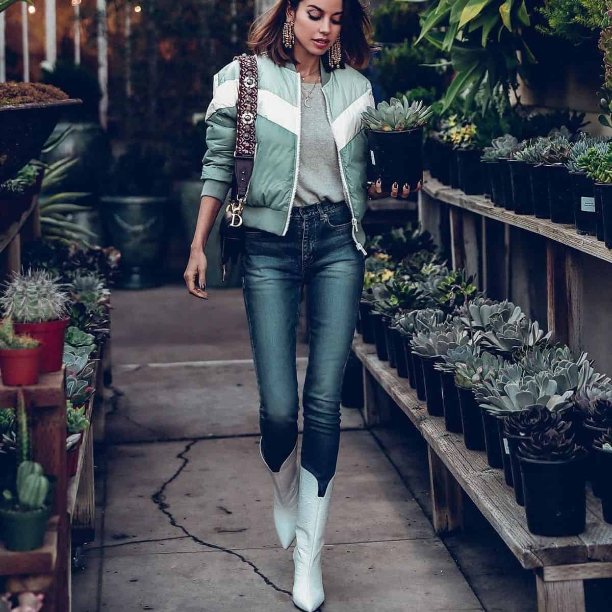ويمكنكِ ارتداء جاكيت رياضي، يمزج بين اللون الأبيض والمينت؛ حيث يعد المينت من بين أكثر الألوان رواجًا مؤخرًا.