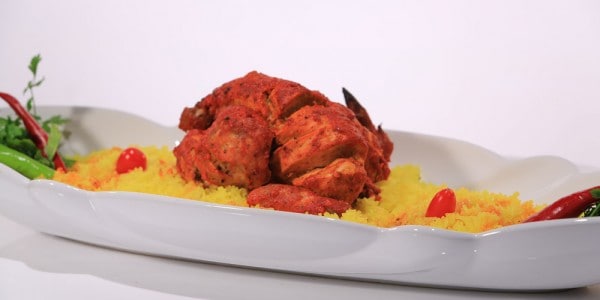– غطي الصينية بورق الألومنيوم وأدخليها الفرن على حرارة 190 درجة لمدة 45 دقيقة حتى ينضج اللحم.
