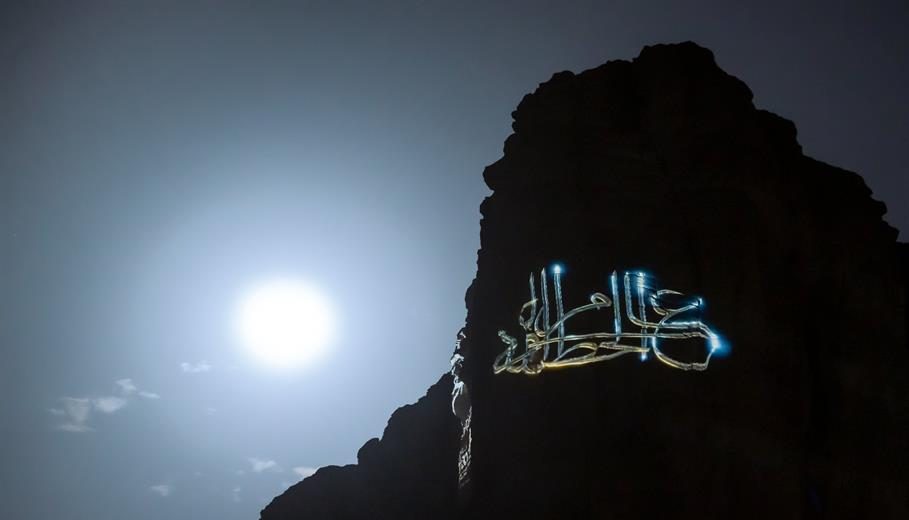 وأضاء جبل طويق، بشعار عام الخط العربي 2021، والذي جاء ضمن احتفالات وزارة الثقافة بالتراث العربي.
