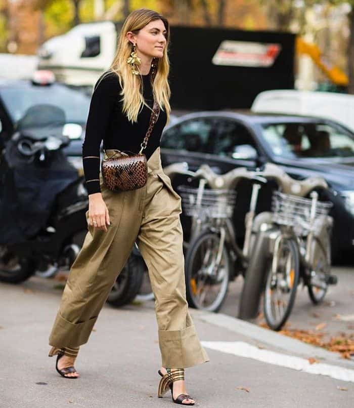 ويمكنكِ اختيار بنطلون بيج أو زيتي وتنسيقه مع بلوزة ناعمة بلون يليق بهذه الألوان مثل الأسود أو الوردي أو الهافان.