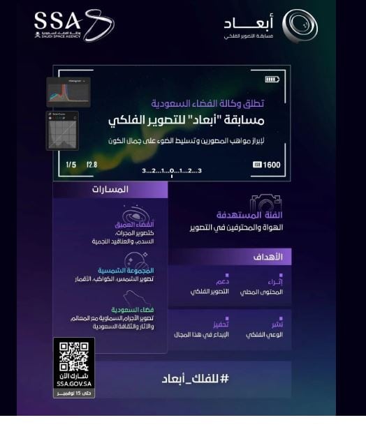 أعلنت وكالة الفضاء السعودية، اليوم الخميس، إطلاق مسابقة التصوير الفلكي “أبعاد”.