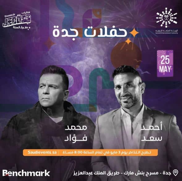 كذلك أعلن موقع فعاليات جدة عن حفلة ستقام في 25 مايو بـ «عروس البحر الأحمر»، يحييها محمد فؤاد وأحمد سعد.