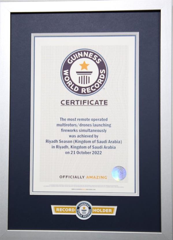 بدورها، أعلنت الهيئة العامة للترفيه، تحقيق موسم الرياض الرقم القياسي في عدد أجهزة درون لإطلاق الألعاب النارية.