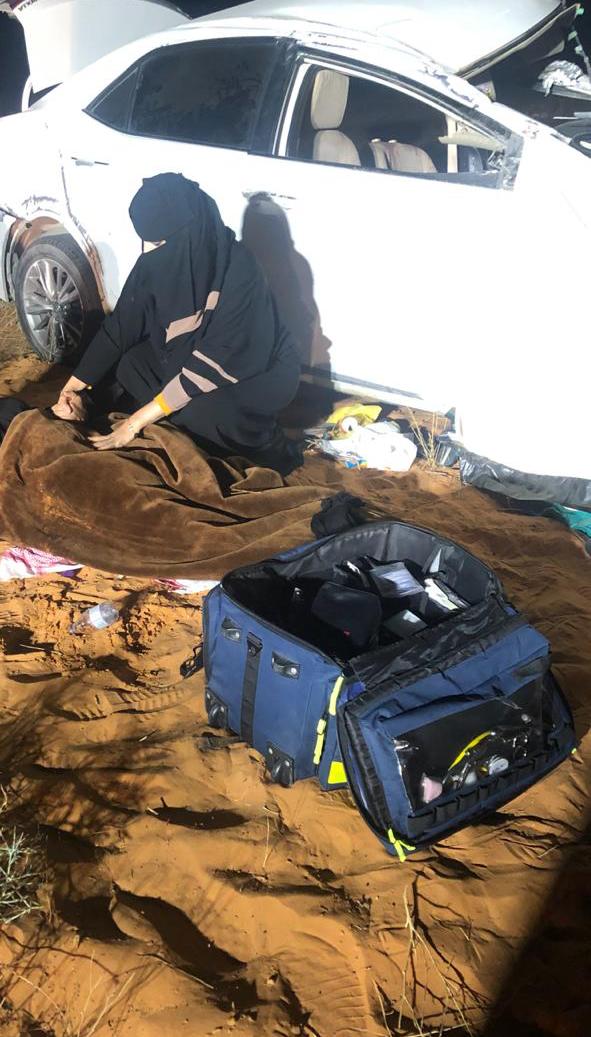 وأشار إلى أن الممرضة مريم الشمري، من صحة حفر الباطن صادف مرورها في الطريق مع وقت وقوع الحادث، بينما تم توجيه 3 فرق إسعاف من الهلال الأحمر وفرقة مساندة من مستشفى قبة للموقع.