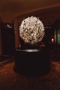 وتتّخذ المنحوتة شكل شجرة دائرية يبلغ قطرها 140 سنتيمترًا، تتدلّى منها زجاجات عطر معلّقة، وتحمل أكثر من ألف ورقة وثمرة مصنوعة من الجص، صُبّت كلٌّ منها يدويًا باستخدام نماذج نباتية حقيقية، في استعراض لافت لمستوى الحِرفيّة المتقن.