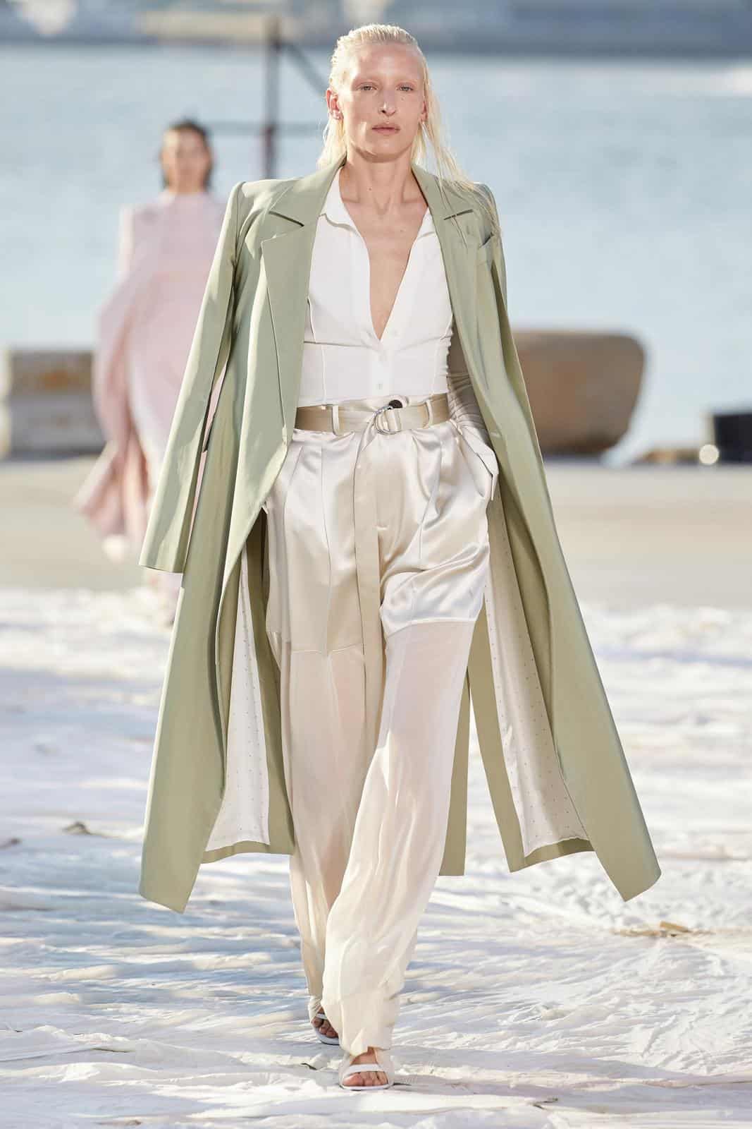 على سبيل المثال، تألقت عارضة بروينزا شولرProenza Schouler بمعطف كاكي طويل تميز بقصته الواسعة، وأيضًا قدمت ماركة Peter Do معطف ميدي باللون الأخضر النعناع.