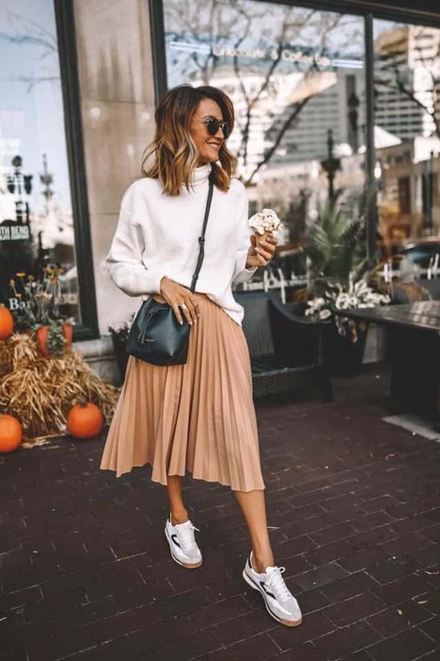 كذلك ستكون هذه التنانير من أبرز اتجاهات الموضة لخريف 2021، ويمكنكِ اختيار التنورة الميدي ذات الطيات، وتنسيقها مع السترات الصوفية الأنيقة، مع ارتداء حذاء جلدي طويل، لتحصلي على إطلالة أميرية وأنيقة.